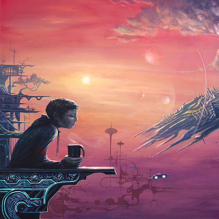 Born in 1986 and raised in rural Ohio, Logan Walden is the son of Chris Walden, a professional wildlife artist native to New Zealand. Logan’s parent’s laid the footpath to a creative lifestyle at an early age. After years of working in the film industry, Logan was intro- duced to the “visual performing arts scene” in 2010 at Lightning in a Bottle, a Transformational Music and Arts Festival in southern CA. From that point on, Logan’s life was, indeed, transformed. He found his calling as an artist and moved home to OH from CA to study acrylic under his father in 2012. Since then, Logan’s surreal style of Fantastical Sci-Fi with deep narratives and rich color pallets, has made it’s way into festivals, concerts, galleries and street shows around the United States.